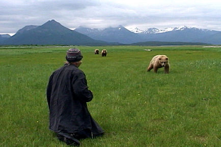 « Grizzly Man » est un documentaire réalisé en 2005 par Herzog sur la vie d’un couple d’écologistes qui a voulu vivre au milieu des grizzlys, un mélange entre les images filmées par Treadwell et celles de l’enquête menée par Herzog pour comprendre les raisons qui ont poussé ces gens à mener cette vie. Treadwell était alcoolique, plusieurs cures de désintoxication avaient échouée, mais c’est lors d’un voyage en Alaska que tout va basculer. Sa rencontre avec le monde des grizzlys va bouleverser sa vie et lui permettre d’arrêter de boire. Il effectuera avec sa compagne pas moins de treize voyages en Alaska pour vivre au milieu des ours, fondant même une association « Grizzly people ». La caméra de Treadwell filmait lors de l’attaque de leur campement par un ou des grizzly(s), mais le cache étant resté sur l’objectif, il ne resta que le son et l’effroi puisque le couple fût retrouvé mort et mutilé par les ours dont ils assuraient la protection. Nous sommes là face à un documentaire absolument sublime, qui nous laissent la possibilité de nous forger notre propre opinion sur le sens ou l’absence de sens de ce choix de vie. Selon moi l’on peut presque parlé de « sacrifice », Treadwell voulait approcher les ours de plus en plus près, il aimait à se mettre dos aux ours, un comportement extrêmement dangereux qui le mènera lui et sa compagne à sa perte. Ne cherchaient-ils pas cela finalement ? n’a t’il pas sacrifié son corps dans une sorte de don ultime, afin de demander pardon pour tous les crimes contre le monde sauvage commis par l’homme ? Là encore, il ne convient pas de faire de l’anthropomorphisme, la nature n’est ni bonne