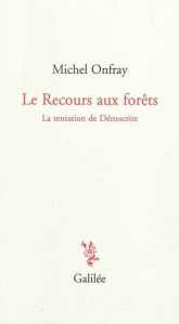 « Le recours aux forêts, la tentation de Démocrite » est un texte très court écrit par Michel Onfray en 2009. Dans ce dernier, découpé en deux parties, l’une présentant les horreurs de ce monde, l’autre célébrant à contrario les bienfaits de la mère nature, sa beauté viscérale, son enchantement face au désenchantement humain, Onfray nous invite à réfléchir sur cette possibilité du retour à soi, de cette retraite en nous-mêmes, au cœur de la forêt comme le fit Démocrite en son temps dans sa cabane au fond de son jardin. En bon matérialiste, Onfray nous invite à accepter le monde tel qu’il se présente, en ne craignant pas de nous retrouver en tête à tête avec nous-mêmes afin de nous y réfugier face aux tempêtes secouant le vaste monde. Qui n’a pas un jour souhaité retrouver cet isolement originel dans le sein d’une nature démiurge, se poser et réfléchir au non sens, à la futilité de bons nombres de nos comportements quotidiens, accepter de n’être qu’un amas d’atomes dans un univers infini. Ce texte d’Onfray est riche des nombreux questionnements qu’il soulève.