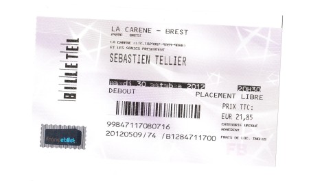 encore avec nous avant que le personnel de la Carène ne lui rappelle qu’il y a un horaire à respecter. Il quitte cette fois-ci définitivement la scène et nous de l’entendre micro allumé chantant encore et encore en coulisse. Qu’ajouter de plus sinon que la Set List est suffisamment maline pour nous transporter, Tellier demeure un musicien hors pair mais j’ai été pour ma part déçu par une partie du public brestois qui n’a pas compris que le second degré assumé de Sébastien Tellier se terminait lorsque la musique reprenait. Le rappel a ainsi été en partie gâché par les bruits intempestifs de gens qui empestaient l’alcool et autres produits stupéfiants. Je suis étonné que le bar soit demeuré ainsi ouvert pendant toute la durée du live, c’est vraiment dommageable pour ceux qui viennent à un concert avant tout pour écouter de la musique !