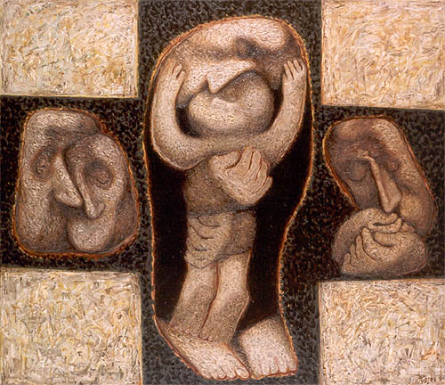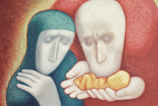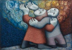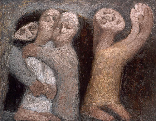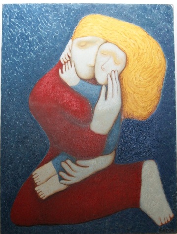 Une peinture étonnante qui toute en rondeurs comme un cocon dont il sort à la fois des promesses de tendresse et le poids de la souffrance, digne, contenue. Tout est vécu dans le cœur, la chair et les destins mêlés.De belles vies entremêlées où les corps et les mains parlent vrai.