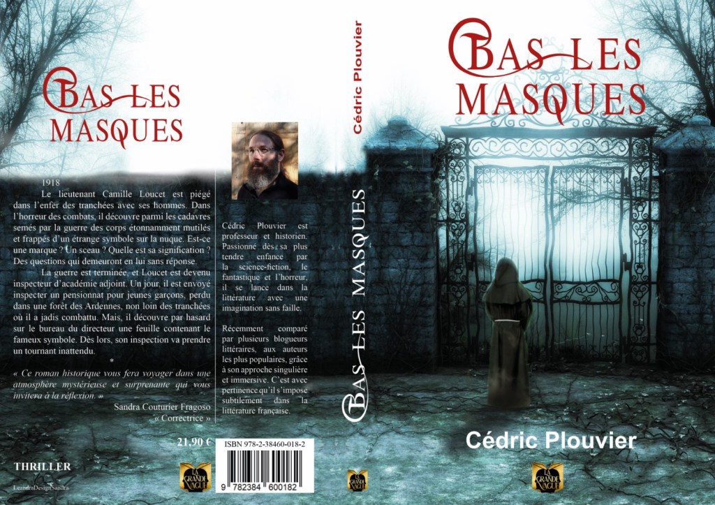 « Bas les masques » paru aux éditions La Grande vague, fin mai, est selon moi le le meilleur roman de l’auteur Cédric Plouvier. Ce dernier est assurément un écrivain à suivre de près tant son imagination débordante, la qualité de son style d’écriture emporte le lecteur que je suis. Dans « Bas les masques », la couverture intrigue et elle représente de façon subtile l’atmosphère empli de mystères, de secrets gardés. le roman débute en 1918, dernière année de la Première Guerre Mondiale, le lieutenant Camille Lucet est plongé depuis quatre longues années dans l’enfer des tranchées, la boue, les rats, les cadavres d’hommes, d’animaux, les barbelés, les obus qui pleuvent aussi bien côté Français qu’Allemand. Les pertes sont terribles, l’horreur, le cauchemar vécu par ces hommes est parfaitement retranscris par Cédric Plouvier. J’ai été profondément ému par les premiers chapitres du roman. L’immersion est totale, l’émotion affleure face au sacrifice de ces hommes, l’absurdité des massacres, des assauts inutiles, des combats au corps à corps, de la folie qui guette et attend son heure pour faire vaciller les consciences et l’esprit de sacrifice, un courage hors du commun, un enfer digne des neufs cercles de celui-ci dont le chef d’œuvre de Dante Alighieri nous parle. Au comble de l’horreur, le lieutenant Lucet retrouve un amoncellement de cadavres allemands atrocement mutilés. Mais au delà de cette sauvagerie sans nom, il est interpellé par un symbole étrange présent sur la nuque de ces soldats allemands. La guerre s’achève enfin et les traumatismes présent chez Camille Lucet vont le poursuivre avec notamment cette interrogation sur la signification de ce signe. Camille Lucet, professeur d’histoire, devient inspecteur d’académie adjoint. Sa première mission va le conduire dans une étrange enquête sur une école, un pensionnat plus précisément situé dans un ancien monastère entouré d’une forêt épaisse et d’un brouillard persistant. Les élèves portent tous un masque avec un symbole représentant divers animaux. Ils ne parlent pas, semble dénués d’émotions, prodigieusement investis dans leurs études. Nul rire, nul jeux propre à leur âge et un mystère qui s’épaissit. le directeur de cet endroit intrigue Camille Lucet d’autant plus lorsqu’il surprend sur un dossier posé sur le bureau du directeur, le même symbole que celui retrouvé sur les corps mutilés de soldats allemands. C’est dans cet univers pétris par l’obscurité et aux confins du mystère que ce roman nous conduit. J’ai été embarqué par l’histoire. Il m’a été impossible de lâcher le thriller « Bas les masques » avant d’en connaître l’issue. Une enquête, un homme Camille Lucet et des réponses à trouver. Je vous recommande ce thriller envoûtant signé Cédric Plouvier. « Bas les masques » est une incontestable réussite. Une nouvelle fois, Cédric Plouvier surprend son lecteur.